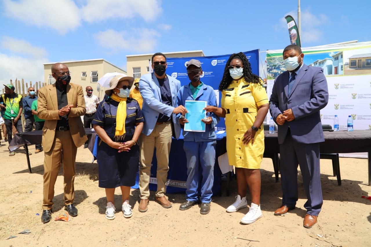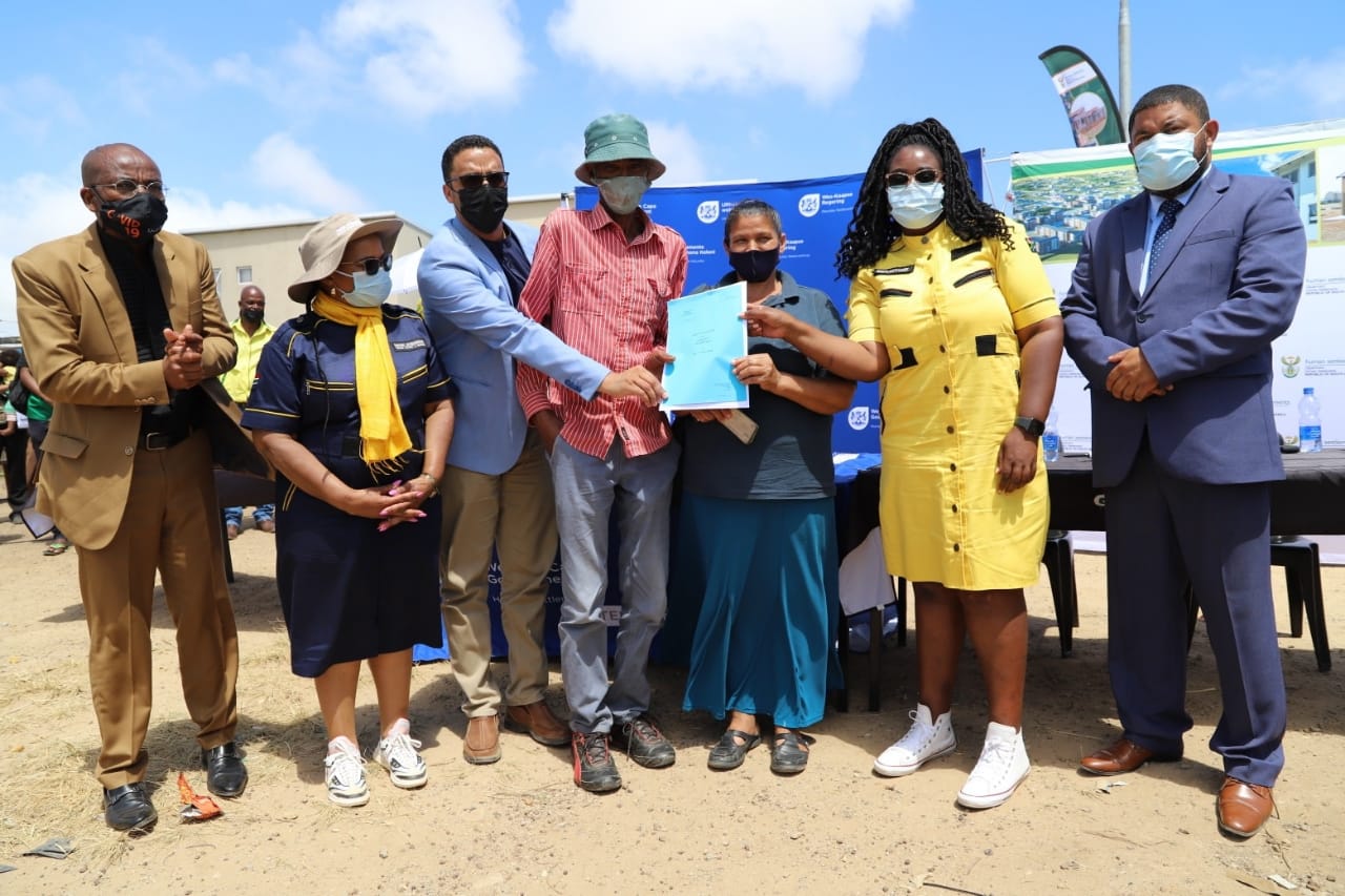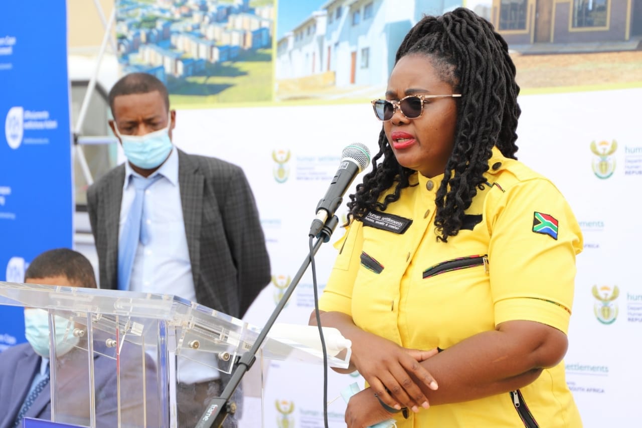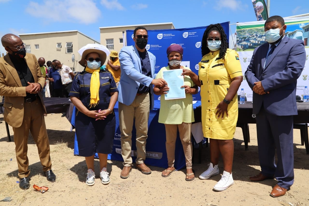 Minister Kubayi addressing the community of Syfersfontein Erf 325 for Title Deeds Handover ceremony in George, Western Cape.