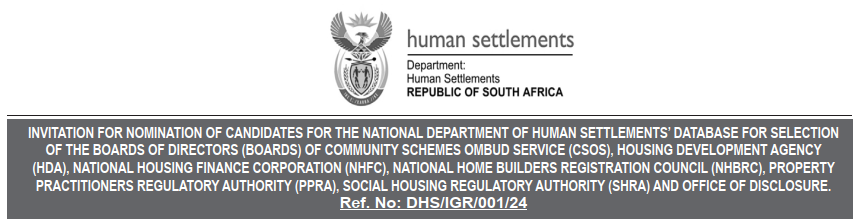 INVITATION FOR NOMINATION OF CANDIDATES FOR THE NATIONAL DEPARTMENT OF HUMAN SETTLEMENTS’ DATABASE FOR SELECTION