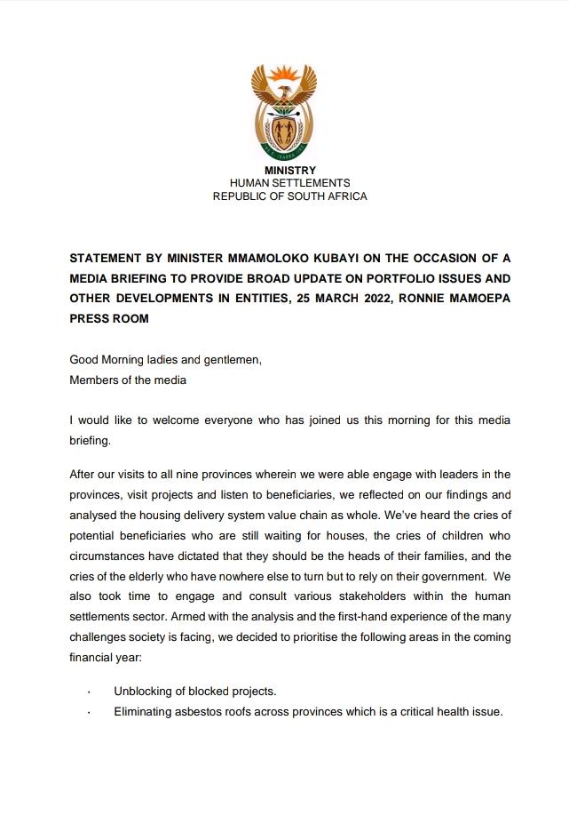 MEDIA BRIEFING TO PROVIDE BROAD UPDATE ON PORTFOLIO ISSUES AND OTHER DEVELOPMENTS IN ENTITIES