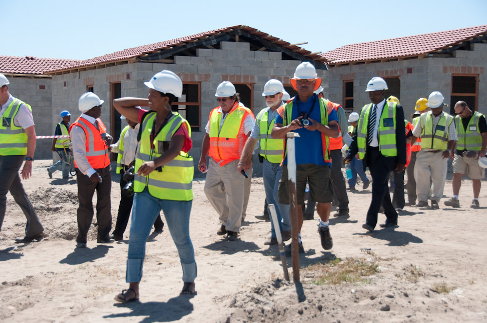 The Western Cape Minister of Human Settlements, Minister Bonginkosi Madikizela, head of department Mr Mbulelo Ntshangana, Mayco Member for Human Settlements Councillor Ernest Sonnenberg, and Daphne King, head of Communication and Stakeholder Engagement for the City of Cape Town, spent the day with members of the media visiting the N2 Gateway projects.